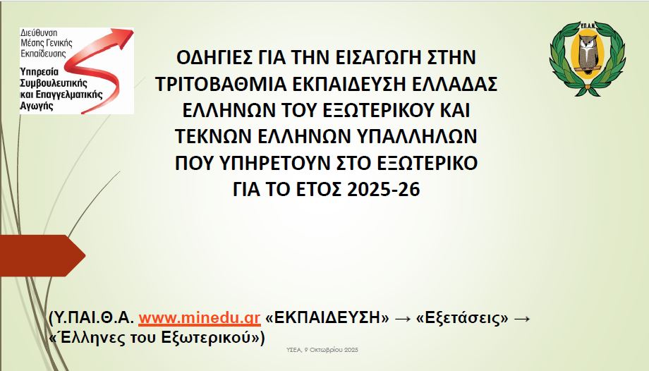 ΕΛΛΗΝΕΣ ΤΟΥ ΕΞΩΤΕΡΙΚΟΥ - ΕΙΣΑΓΩΓΗ ΣΤΗΝ ΤΡΙΤΟΒΑΘΜΙΑ ΕΚΠΑΙΔΕΥΣΗ