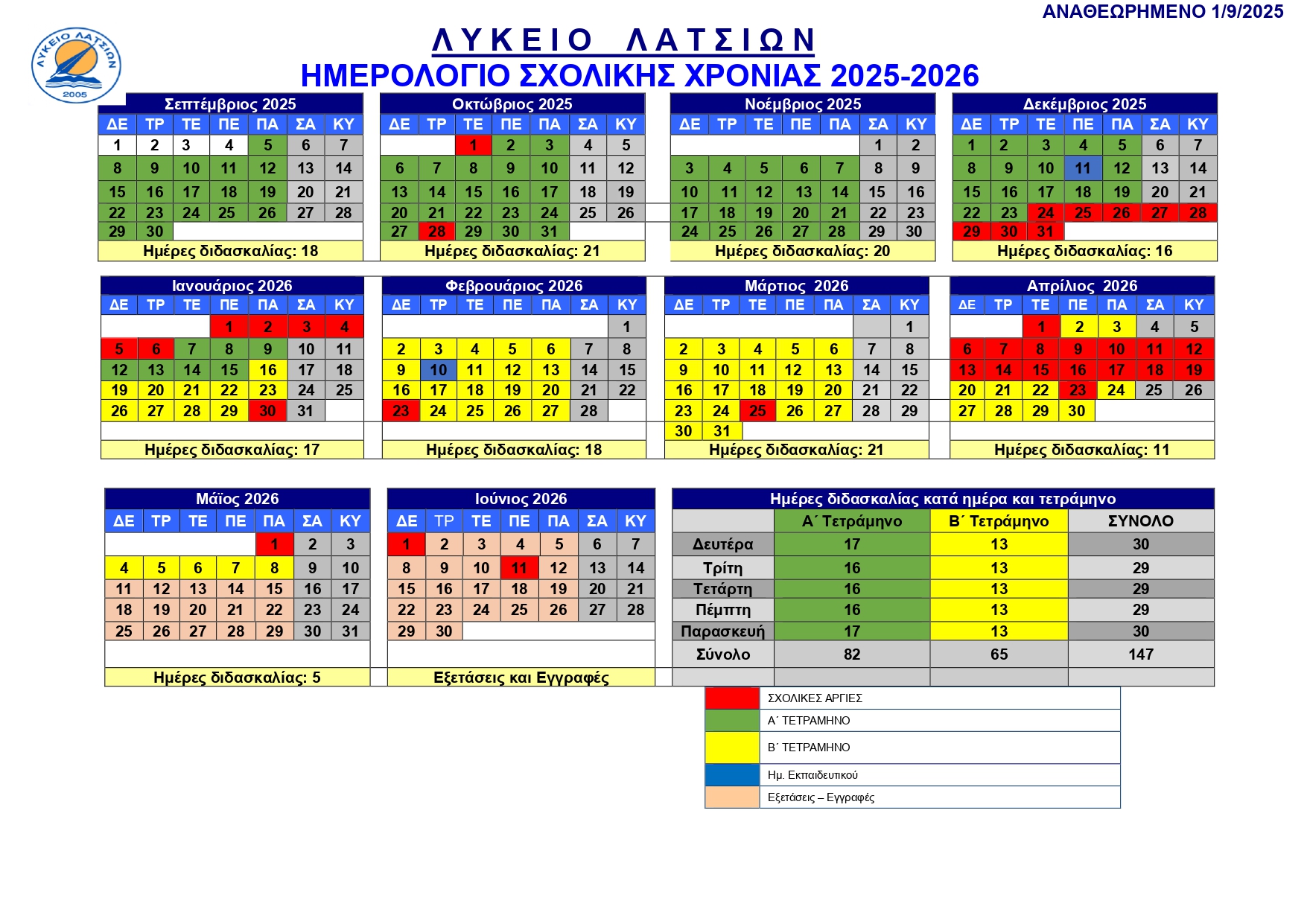 ΗΜΕΡΟΛΟΓΙΟ 2025-2026
